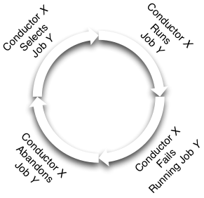 Conductors act as entities which extract jobs from a jobboard, assign there work to some engine (using some desired configuration) and then wait for that work to complete. If the work fails then they abandon the claimed work (or if the process they are running in crashes or dies this abandonment happens automatically) and then another conductor at a later period of time will finish up the prior failed conductors work.